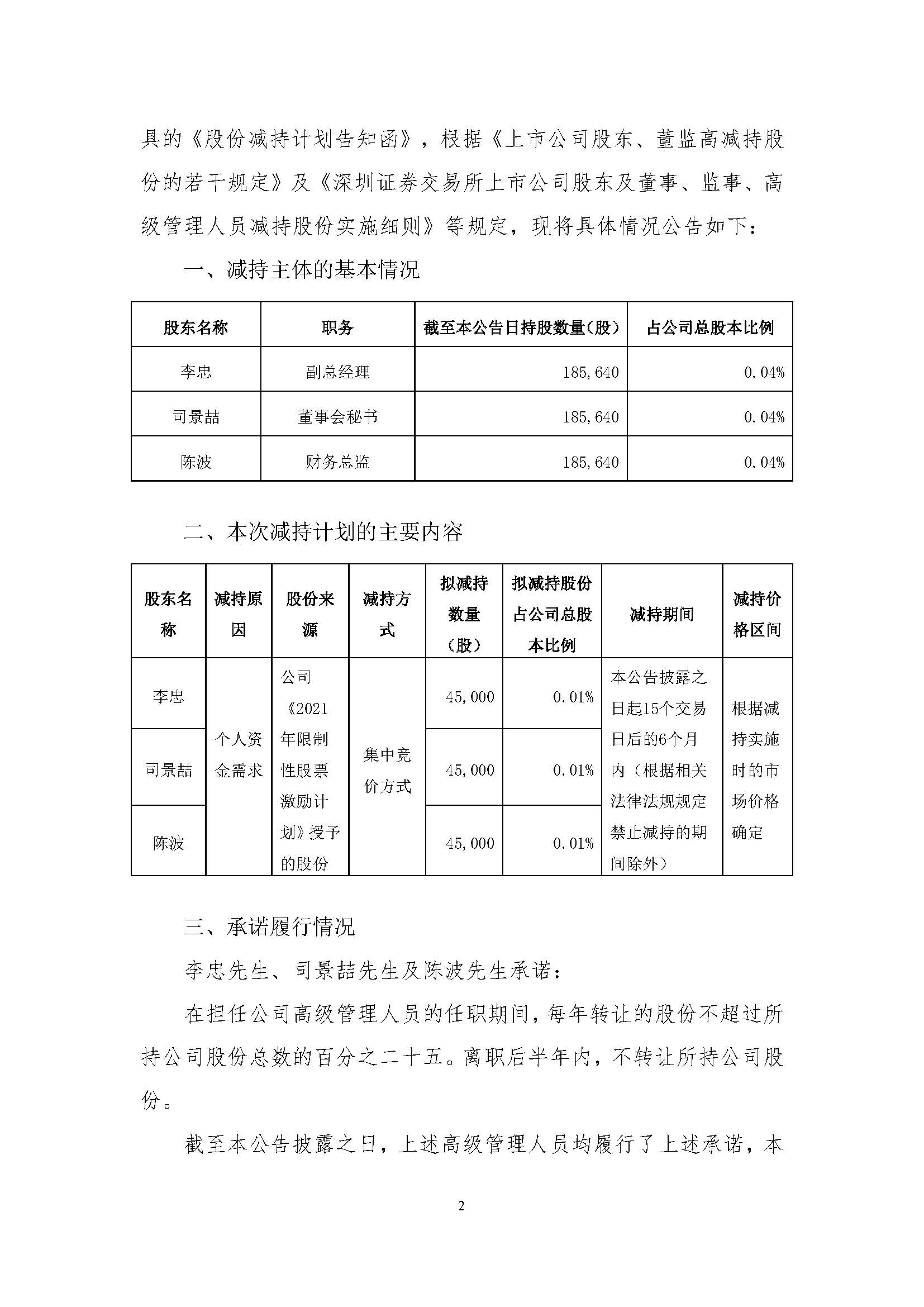 關(guān)于部分高級(jí)管理人員減持股份的預(yù)披露公告